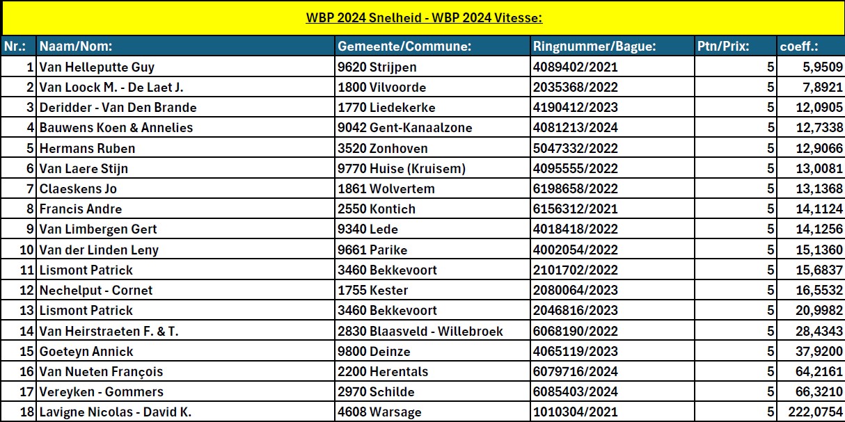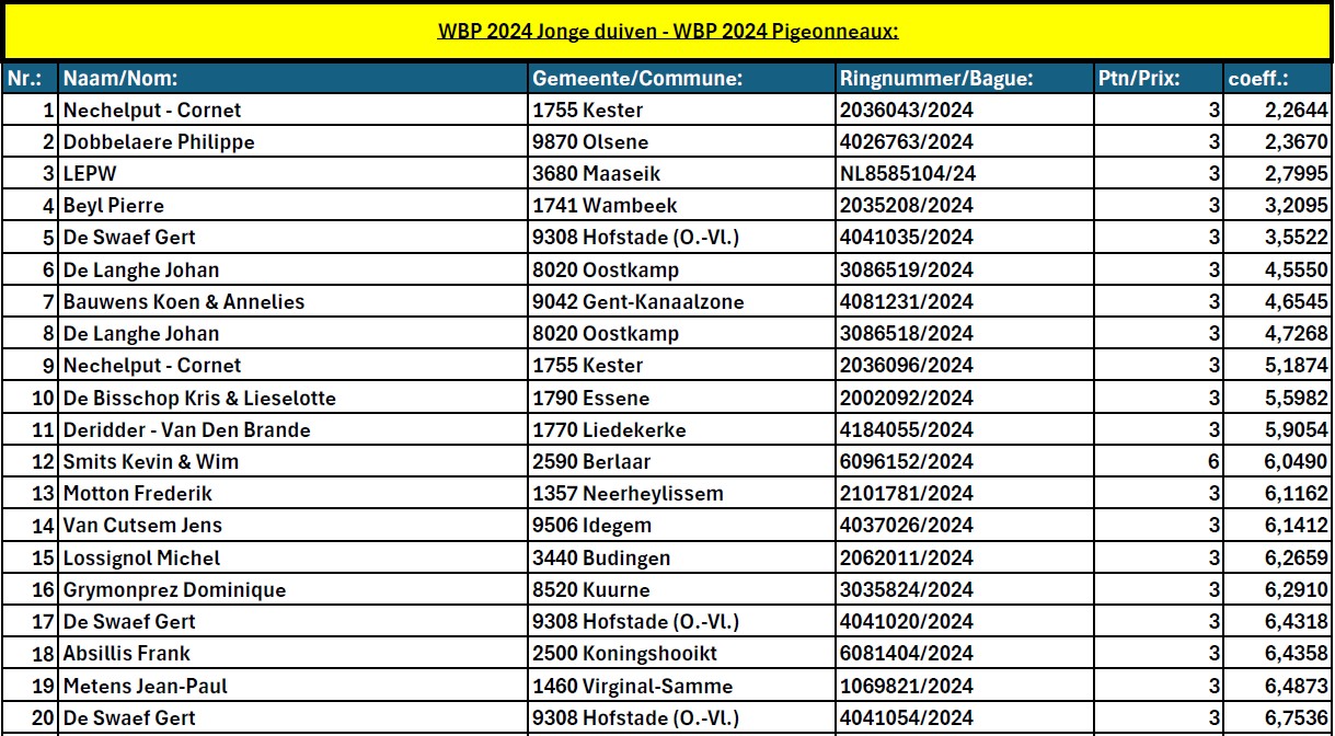 30-10-24 Mededeling van de KBDB World Best Pigeon – Definitieve uitslag