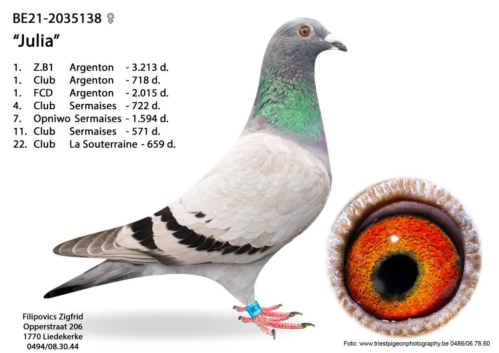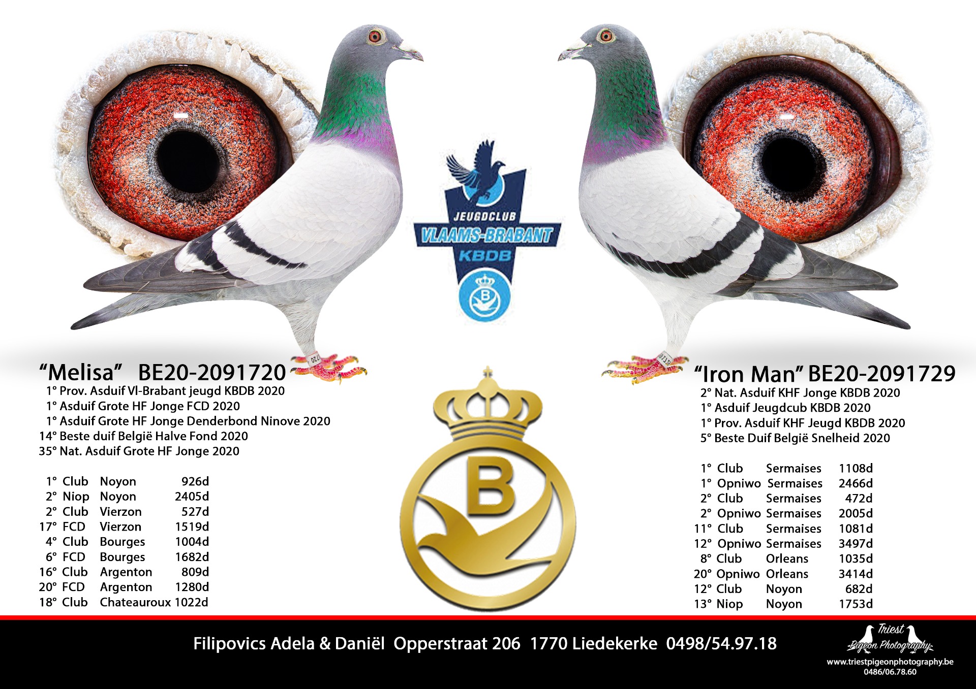 In deze veiling biedt de familie Filipovics het beste van het beste aan. Kinderen en kleinkinderen van hun gekende duiven zoals Iron Man : 2e Nat.Asduif KHF Jonge KBDB ’20, Anton : Vader Iron Man, Melisa : 1e Prov.Asduif Jeugd KBDB ’20, Arnaud 097 : Topkweker, en zoveel meer!